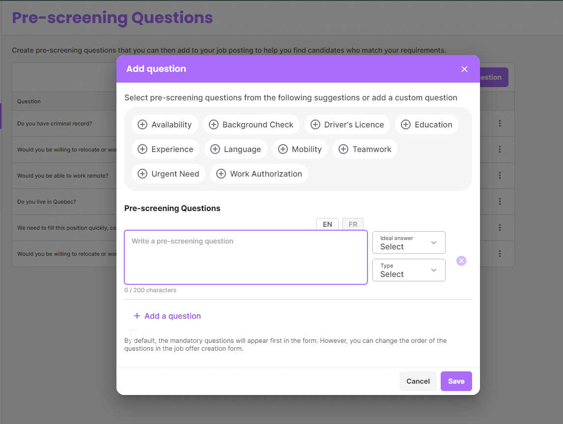 If you’re hiring for a specific skill set, require a certain set of credentials, or licences, the pre-screening questions can help clarify this information. It’s important to understand if the candidate can perform the job functions.